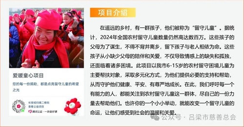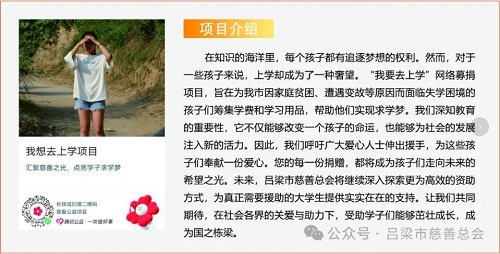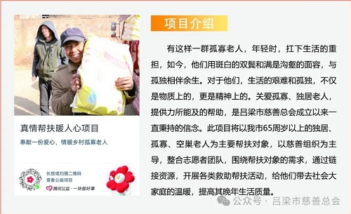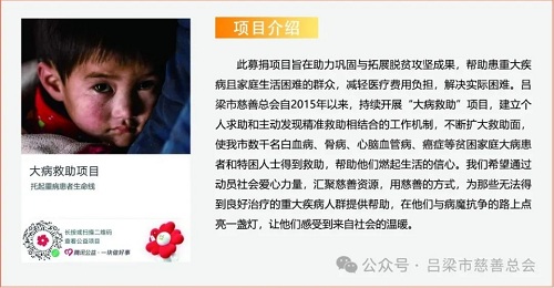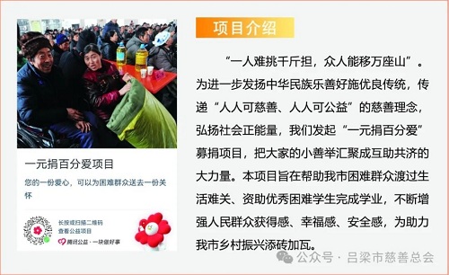 黨的二十大明確指出,要引導、支持有意愿有能力的企業、社會組織和個人積極參與公益慈善事業。黨的二十屆三中全會《決定》中也著重強調:“支持發展公益慈善事業?!睘榉e極響應國家關于慈善事業發展的號召,深入貫徹《慈善法》精神,進一步弘揚中華民族扶危濟困、樂善好施的傳統美德,呂梁市慈善總會結合2024年“第九個中華慈善日”、第四個山西省慈善宣傳周及“騰訊99公益日”等特殊節點,籌劃了“大病救助”、“愛暖童心”、“私人訂制助殘服務”、“一元捐百分愛”、“真情幫扶暖人心”、“我要去上學”六個互聯網募捐項目,旨在通過網絡籌款平臺,匯聚社會各界愛心力量,為我市貧困家庭、孤寡老人、殘障人士、困境兒童等弱勢群體提供精準幫扶,助力他們改善生活條件,共享社會發展成果,共同構建幸福美麗呂梁。