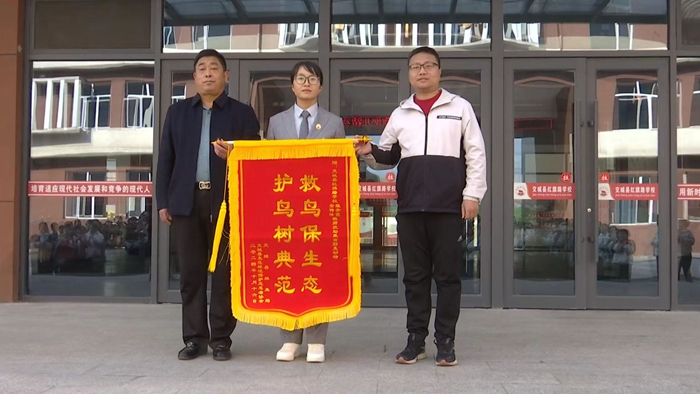 近日,交城縣紅旗路學校的睢云霞和安傳峰兩位教師成為了校園里的護鳥典范,他們成功救助了一只國家三有保護動物北紅尾鴝,用實際行動詮釋了對生態保護的擔當與責任。交城縣林業局、交城縣生態環境保護志愿者協會共同授予了該校教師安傳峰、睢云霞“救鳥保生態 護鳥樹典型”的錦旗!
