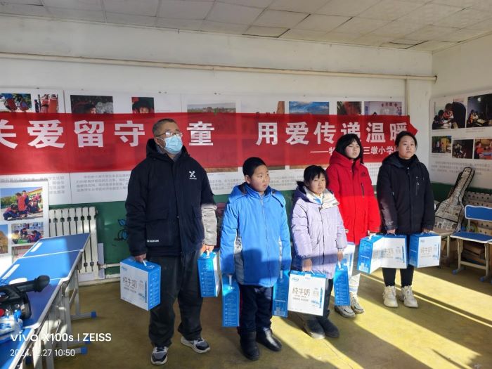 在元旦佳節(jié)即將來臨之際,大同市留守兒童救助協(xié)會(huì)攜手大同牧同乳業(yè),帶著滿滿的愛心與關(guān)懷,走進(jìn)了新榮區(qū)花園屯鎮(zhèn)三墩小學(xué),為該校10名留守、困境兒童送去了節(jié)日的溫暖與祝福。