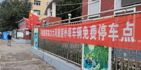 圖為大同市平城區教育系統公益善舉助力五一文旅熱潮 外埠車輛免費停車點現場