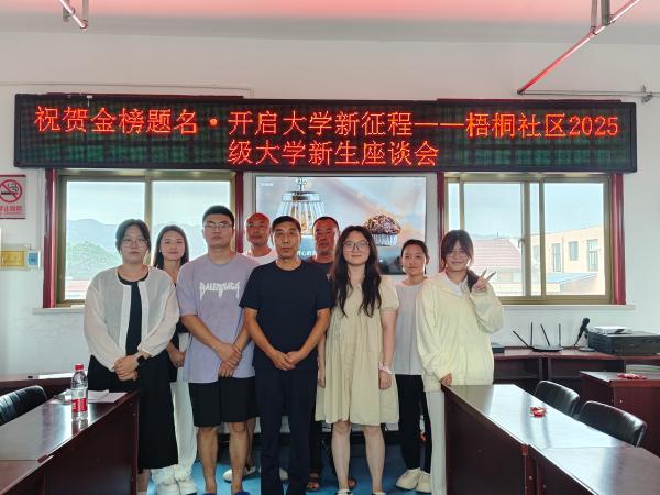 活動伊始,社區黨支部書記張魯建熱情致辭,送上真摯祝福與期盼,笑言“娃們爭氣,爸媽長臉,梧桐也跟著沾光”。隨后,剛畢業的學姐化身“攻略達人”,分享大學學習、為人處事經驗,涵蓋“如何獲獎學金”“怎樣與室友相處”“活動選擇方向”等實用內容,讓新生直呼“實用”。互動環節,準大學生們積極總結前輩建議,提出即將面臨的問題,現場交流熱烈。