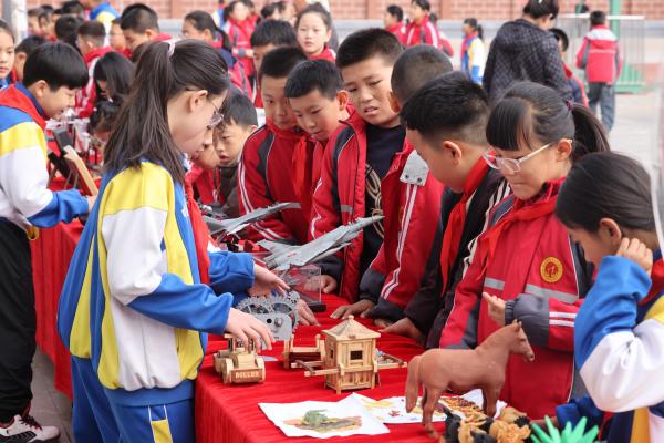 開幕式結束后,科技文化節系列活動全面鋪開??萍甲髌氛箙^內,一件件充滿童趣與創意的作品讓人應接不暇。低年級學生用廢舊材料制作的“AI環保小衛士”模型,巧妙融合了美術設計與環保理念;中年級學生設計的“智能校園導航”小程序,運用編程知識解決校園實際問題;高年級學生的“未來城市科幻畫”,以絢麗色彩描繪出人工智能賦能生活的美好愿景。每一件作品都凝聚著孩子們的奇思妙想,充分展現了跨學科學習的實踐成果。